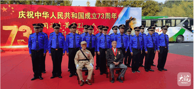 升旗仪式上,抗美援朝老兵面对“保家卫国 中国人民志愿军抗美援朝72周年”大型画板心情激动,现场重温了他们在战场上殊死战斗的不凡经历和感人故事。