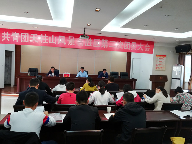 10月14日上午共青团天柱山风景名胜区第二次团员大会召开,团员代表一共18人参加会议。